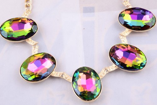 TQ Fashion 2014New Design Lady multi rainbow 5stones crystal heavy bib statement necklace