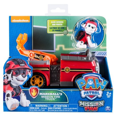 No job is too big and no pup is too small! Now Paw Patrol fans can re- enact real Mission Paw rescues with Marshall and his new Mission Fire Truck! With real working wheels, Marshall can ride inside to race to the rescue and save Adventure Bay. Collect Marshall and the rest of the Paw Patrol vehicles and figures! (Each sold separately). Together, your child's imagination will be lit up with pup inspired rescue missions full of friendship, teamwork and bravery. Choose from Chase, Marshall, Skye, Rocky and Rubble, each with their own unique transformation! With Paw Patrol there's no job too big and no pup too small. If danger is near just give a yelp, the Paw Patrol is here to help with Marshall's Mission Fire Truck.