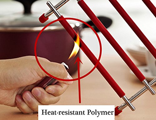 Our signature logo trivet is made from durable stainless steel, and elevates hot pans or pots to protect table and countertop surfaces. Non-skid feet will not scratch table or counter surfaces.