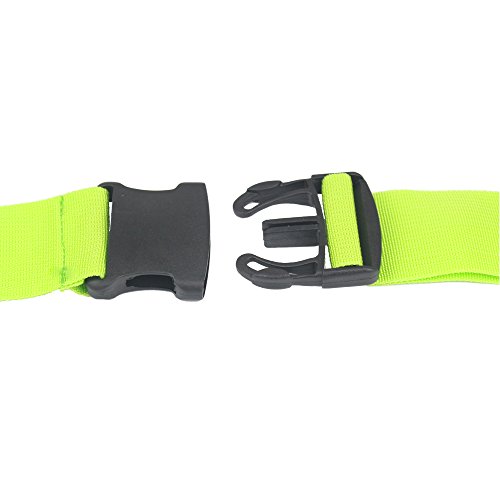 The Wstorm Green Travel Luggage Straps come in a convenient 2-pack, featuring adjustable lengths from 100 to 180 cm and a heavy-duty plastic buckle for secure closure. Designed to fit a wide range of suitcase sizes (16"-32"), these vibrant green straps not only enhance luggage security but also add a fashionable touch for easy identification during travel.