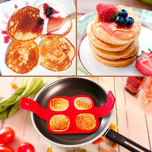 Pupow New Premium Silicone Pancake Moulds Features: Material: Food grade silicone material. Color:Red(same as picture shows) Nonstick surface Size :40*23*1.5cm Dishwasher Safe Best results when rings lay flat on cooking surface Flips multiple pancakes at the same time without the mess. Easily prepare perfect pancakes with the Fantastic Nonstick Pancake Ring. Package included: 1 x Pancake Maker