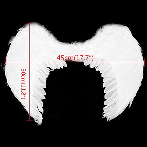 Approximate Wingspan (from left to right) about 60cm across in openApproximate Wing Height (from top to bottom) 40cm This product is hand-made and it is Fragile. Must handle with care. The wings are both sides glued with real feathers. It has a pair of straps for wearing through the arms on the shoulders at the back.