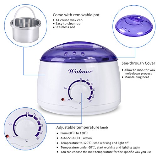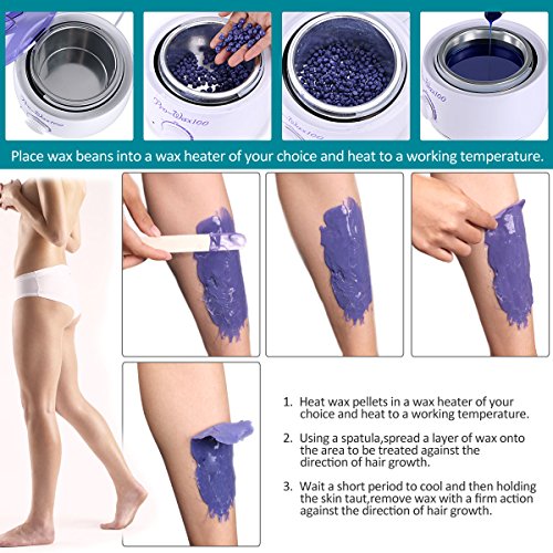 Specifications: 1. Capacity: 500 CC 2. Box Size: 20 *20 * 15.5cm 3. Aluminum container: D10.5cm * 6.5cm 4. Rated power voltage: 100W,220-240V,UK Plug 5. Frequency: 50/60Hz 6. Weight: 1.4kg Directions For Use: 1. Cleansing skin,Exfoliating. 2. Heat the wax to a melting temperature, after the wax melted, spread a layer of wax with a spatula on the skin along the direction of the hair growth. 3. After 15-20 minutes, feel the wax temperature disappears when the wax stripped, against the direction of the hair growth quickly ,coated with skin cream. 4. Pour some of Water into the container heating dissolved away the wax. 5. Use makeup remover scraper and paper towel to wipe out the inside of the wax pot to get rid of any residue. Note: 1.The machine must be placed on a flat desktop. 2.Our product fulfilled by Amazon,they responsible for our delivery,when you receive the product or box is damaged, please contact us promptly by email,we will help you to deal with it. 3.Some people have sensitive skin, test on a small area before using, in addition,wax can be used on a proper temperature,otherwise,may cause burns. 4.Do not use it on broken or irritated skin. If you are on medication that affects skin or you have a skin related disorder,consult your doctor before use. 5.Do not use it if your skin suffered any adverse reactions to wax in the past. For best results,be sure to read all instructions thoroughly before using the WAX HEATER. 6.Do not use it within 2 hours after taking a shower,or sunbathing. Package Include: 1*wax machine 2*300g wax beans(Lavender, chamomile) 10 *Wax Applicator Sticks 10 *Wax Remove Paper