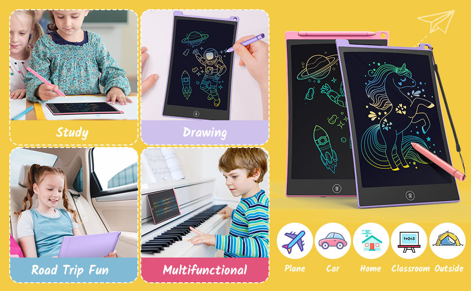 The TECJOE2 Pack LCD Writing Tablet features two 8.5-inch colorful doodle boards designed for kids aged 3-6. Utilizing advanced liquid crystal technology, these tablets provide a vibrant, eye-friendly drawing experience that can be reused over 20,000 times. With a lock function to protect creations and a lightweight design, they are perfect for learning, creativity, and fun on-the-go.