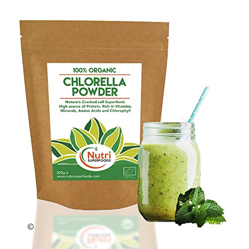 Nutri Superfoods Organic Chlorella Cracked Cell Powder 200g Our Organic Chlorella is grown outside, in freshwater natural conditions and sunlight. No chemical pesticides or herbicides are used in the growth of our organic Chlorella so the maximum amount of its beautiful nutrients are preserved. Chlorella is a Whole, Natural Food Source of Richest Chlorophyll Packed with essential amino acids, potassium, phosphorous, biotin, magnesium and B-complex vitamins, our premium quality is designed to support your heart health by removing harsh metals from your body, balancing your hormone levels, reducing your cholesterol and blood pressure, and fighting free radicals. Just one teaspoon of chlorella powder has the nutritional value of 3 servings of dark green leafy vegetables! Health Benefits:- High In Protein - 60% Protein - contributes to the growth and maintenance of muscle mass. Potassium - To strengthen bones, lower blood pressure and maintains better brain function. Iron - Essential for haemoglobin which carries oxygen throughout your body. Fibre - Helps lower cholesterol levels, regulates bowel movements and aids in weight loss. Chlorophyll - Full of nutrients. Aids with hormonal balance, detoxification of the body and promotes digestive health. High in Antioxidants - Neutralises and removes free radicals. Helps reduce stress, enjoy more radiant-looking skin. Full of Vitamins and Minerals - Your naturally active source of supplements that's easily absorbed into the body for maximum health benefits. Go natural, Be Healthy and Look Younger