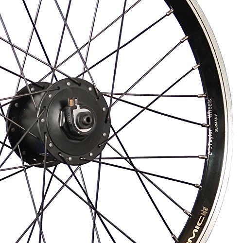 Rim: Grünert Dynamic4 rim is the best option if you are looking for a reliable and good value double-wall rim - 20 inch double-wall rim - ETRTO size: 406-19 - material: aluminium - 36 holes - light weight and buckling resistant - ø valve stem: 8,5 mm - recommended tyre size: 28 - 62 mm - colour: black Spokes: high quality and reliable Nirosta spokes - Nirosta (high-alloyed, stainless steel) - ø spokes: 2.00 mm - ø nipples: 2.00 mm - colour: black Hub: Light weight and compact hub dynamo with high efficiency - Shimano Nexus DH-C3000-3N hub dynamo - aluminium - double-grinded seal - very low roll resistance - performance: 6V / 3W - plug connector included - quick release skewer - 36 holes - colour: black - order the surge protector in our shop! - OLD: 100mm - Brakes: rim brake - Weight bike wheel: 1,52 Kg All our offered wheels are centred and ready for installation on your bike. You will receive appropriate fastening hardware for each wheel (quick release or matching nuts).