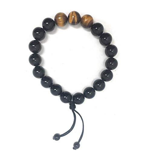 Natural Healing Crystals and Real Tiger Eye Stones Mala Beads Bracelet for Meditation Prayer Yoga Tibetan Buddhist Jewelry Men Women, 10mm, 8”,adjustable