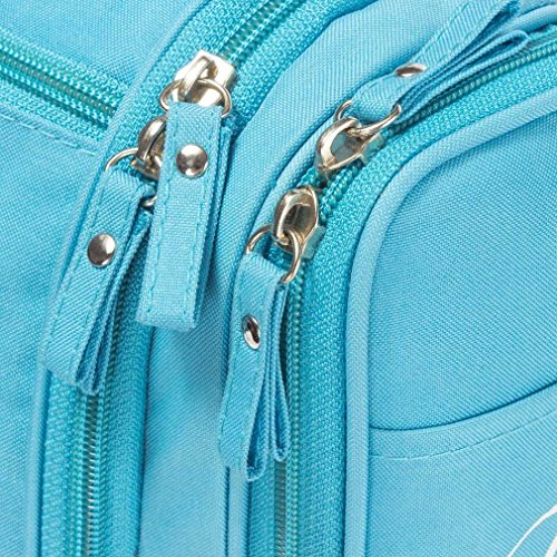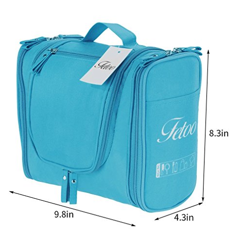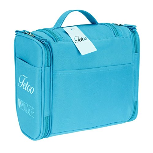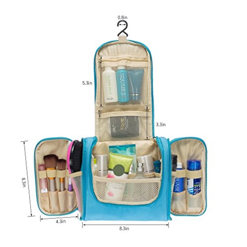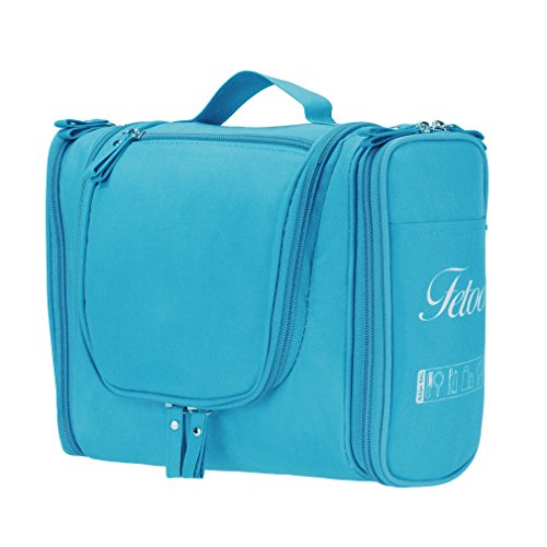 Are you bothered by the mess of the cosmetics and Toiletries when travelling ? Then choose this bag, it solve your problems and go for a easy trip Item Details Size: 26*21.5*11.5 cm Color: Blue, Pink, Green, Gray; you can choose your favorite Material: 300D Polyester internal and 210D PU Polyester external, waterproof and antibacterial Unique Design Big capacity and multi-compartment for you to organize all your toiletry items. Strong and smooth zipper closure can hold all items securely inside; water-repellent interior to keep your toiletry kit clean and dry Hook design on top for you to hang it anywhere, save place and easy for your use. Side pockets for you to store toothbrush toothpaste or bottles, save place and easy access It is small and lightweight, perfect for organizing your personal, household, and travel items, suitable for both home and travel Quality Assurance All our products are from highest possible quality guaranteed factory. The most rigorous manufacturing process gives you the superior possible quality assurance. Package included 1* Toiletry Bag