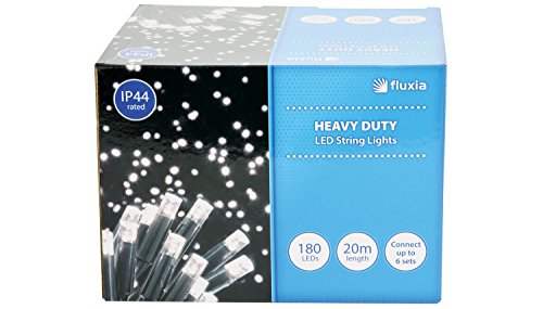 Features • High quality outdoor LED string lights with heavy duty black cable. • You may extend the cable from the mains power supply by using our 5m power extension lead. • Each set is connectable and can be extended up to 12 sets from just one plug. • The high quality LEDs have a long lifespan and are energy efficient making them ideal for decorating homes, shops etc. • Concave shaped LED head gives consistent and uniformed brightness at all angles • IP44 rated for outdoor use • Mains plug to connector: 1.5m • 5m extension lead sold separately (Order ref: 155.488UK) • RGBY versions feature a preset colour scroll • Power supply: 220-240Vac, 50Hz • Cable colour: Black • LED spacing: 100mm • IP rating: IP44 • Power consumption max.: 9W • No. of LEDs: 180 LEDs • LED colour: RGBY • LED length: 18m • Total length: approx. 20m • Max. set connection: 6 sets • Weight: 1.3kg