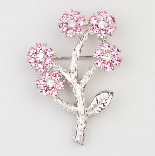 Blooming with sophisticated elegance, the Silver Tone Pink and White Crystals 5 Flower Bouquet Pin Brooch will add radiance to your ensemble. Crafted in brass with a polished finish and realistic engraved detail, featuring pink and white crystals in a beautiful floral design. 1.75" Length, 1.25" Width. Pin stem with safety closure. Packaged in an elegant, complimentary jewelry pouch for sophisticated protection. Who Are We?Rich Chic Jewelry, a family-run company based in NYC, has been selling high-quality fine and fashion jewelry since 1987. We offer efficient, excellent customer service and are proud to stand behind our products.