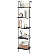The ELYKEN 5-tier ladder shelf combines a vintage black metal frame with engineered wood shelves, standing 70" tall to optimize vertical space. Designed for stability with wall-mount capability and adjustable feet, it supports up to 110 lbs total. Perfect for living rooms, offices, or bedrooms, it offers a stylish, durable, and easy-to-assemble solution for displaying books, decor, and essentials.