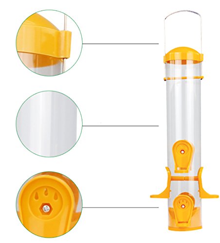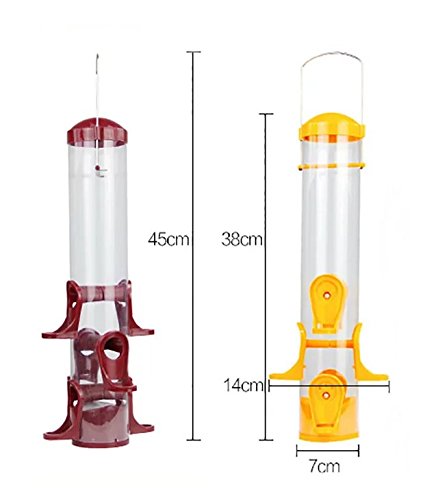 A welcome choice for bird lovers , the bird feeder attracts a wide variety of clinging and perching birds including American Gold Finches, Chickadees, Hairy Woodpeckers, Cardinals, Indigo Buntings, Rose-Breasted Grosbeaks, White-Breasted Nuthatches, and Purple Finches. WandLee Wild Bird Feeder models lure the bird in pursuit of seed providing you with hours of joy as random wild birds flock to feed at your house. Place your feeder just about anywhere. Position the feeder by your deck, in a nearby tree, or over a favorite window for those great close-up views. The bird feeder hangs easily with the use of wall brackets, branch hooks, or extension hooks. Draw those vibrant neighborhood birds to your window. Watch them flit and play about the garden. Or simply provide them with a nourishing meal to cut against the dark, cold chill of Autumn and Winter. Don't wait until this Best Selling Bird Feeder goes on back order again. If you're ready to enjoy the vibrant, majestic beauty of bird watching in your garden or right outside your window, simply add this bird feeder to your cart now. Package Included: 1 x Wild Bird Feeder One year guarantee!