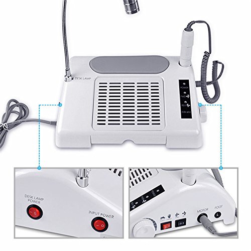 Description: Pro 3 in 1 Multifunctional Salon Nail Art Equipment Tool Nail Art Drill Suction Dust Collector Machine with Desk Lamp 220V (Nail Driller +Nail dust collector + Desk lamp) Specification: Model:TOOL-BB-1019 Item Type:Nail Art Equipment Size:approx.29.8*9*27cm Total Power Rating:30W Input Power: AC110, 50Hz /AC220V, 60Hz Nail Drill:35000rpm/15W Nail Dust Collector:3200rpm/10W Desk Lamp:5W Use For: Nail Drill for pedicure and manicure Dusts collector Equipped with 304 grade stainless steel 0.015cm filter ! No dust bag replacement needed 3200 RPM blower fan equipped Easy cleaning of filtered dusts Package Includes: Main board with main electric plug attached Stainless steel filter installed Nail drill pen Foot pedal LED lamp Box of 6 drill beads Precautions: 1. Ensure to make the dust bag hitch to cover the output of the fan before operating; 2. Note to clean the fan, dust bag and the sponge in time; 3. Not to touch the fan during operating; 4. Insert the plug into the proper socket with correct voltage; 5.Pls not to takeout the power cord during working, unless he switch is at "O" station; 6. Pls keep the equipment away from water, sundries and so on; 7. Pls keep the plug out from the power supply after stop the equipment; 8. Any unaythorized disassembling is prohibited on the equipment. In any case of break down, pls contact the agent or authorized service center.