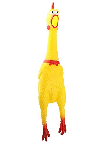 Product Description Everyone needs a rubber chicken at one point in life! THE best way to frighten and annoy others. What can possibly be more fun? Measures 16cm long. Made of rubber. Squeeze it to make it squawk. Also makes a great dog chew toy!