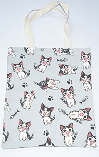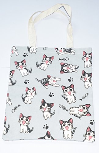 Cute And Trendy Love Cats Canvas School Shopping Utility Tote Bag With Canvas Handles