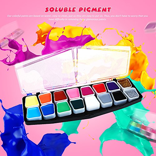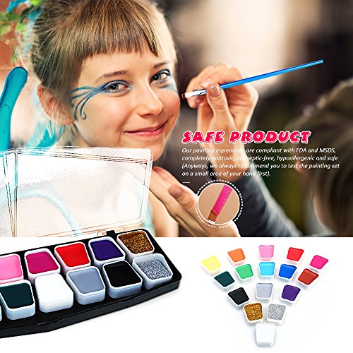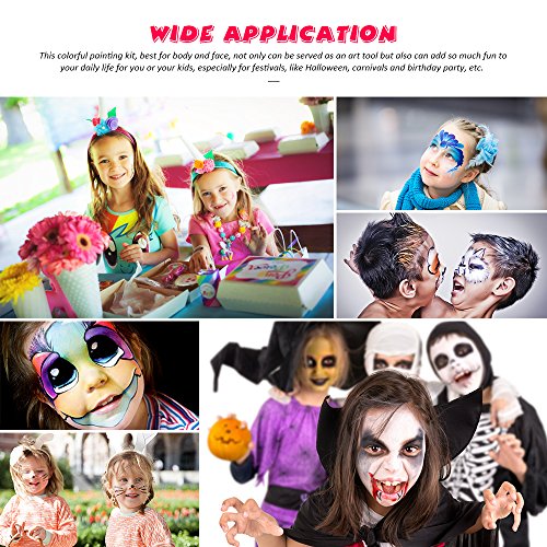 - ❤ Best Gift:This colorful painting kit, best for body and face, not only can be served as an art tool but also can add so much fun to your daily life for you or your kids, especially for festivals, like Halloween, carnivals and birthday party, etc.