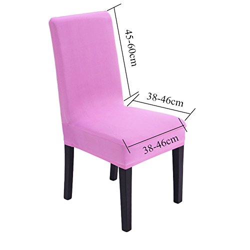Product Specifications:Material: polyester spandexColor: 10 Colors for your choiceSuitable for Chair Size:Back Height:17.7"-23.6" (45-60cm)Seat Length:15"-18" (38-46cm)Seat Width:15"-18" (38-46cm)Product Features:Soft material, comfortable and wrinkle resistant, no ironing required can be used to most chair.Stretchable Material, stretch that recovers quickly, secure fit with sewn-in elastic hem.Can be used for hotel, wedding banquet, dinner, meeting, celebration, ceremony, family dining room decoration, etc.Machine washable, easy to cleaning and wash.Package Included:4 x Dining Chair CoverNote:Before purchasing, please measure the size of your own chair, then according to our reference size.