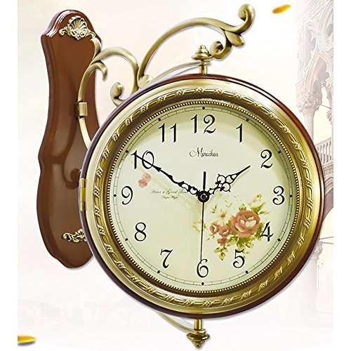 Product Category: Creative luxury fashion simple retro double-sided clockDuplex: double sidedShape: roundStyle: creative fashion Nordic antique styleDisplay Type: PointerFeatures: Decorated for 24 hoursWaterproof: NoPower Type: BatteryMaterial: woodMirror material: plexiglass mirrorMovement: ultra-quiet movement,Weight: about 5KG,Size: 42 * 41cm, hanging plate 36.5 * 12.5, clock diameter 30cm, glass diameter 22cmFeatures: anti-hook solid, metal hook beautiful atmosphere, wooden frame thick and delicate, metal hollow pointer walking time is stable, creative fashion clockApplicable places: living room, office, study, bedroom, room, hotel, club, hotelUses: home decoration, creative wall clock, clockBattery: Use carbon AA batteryCare instructions Clean with a duster.Note:The Real Item's Color which you receive may varies from the listing picture because of different Camera lens, and different light environmentThe clock pointer of each section may be different when the shape of the pointer, the overall does not affect the appearance