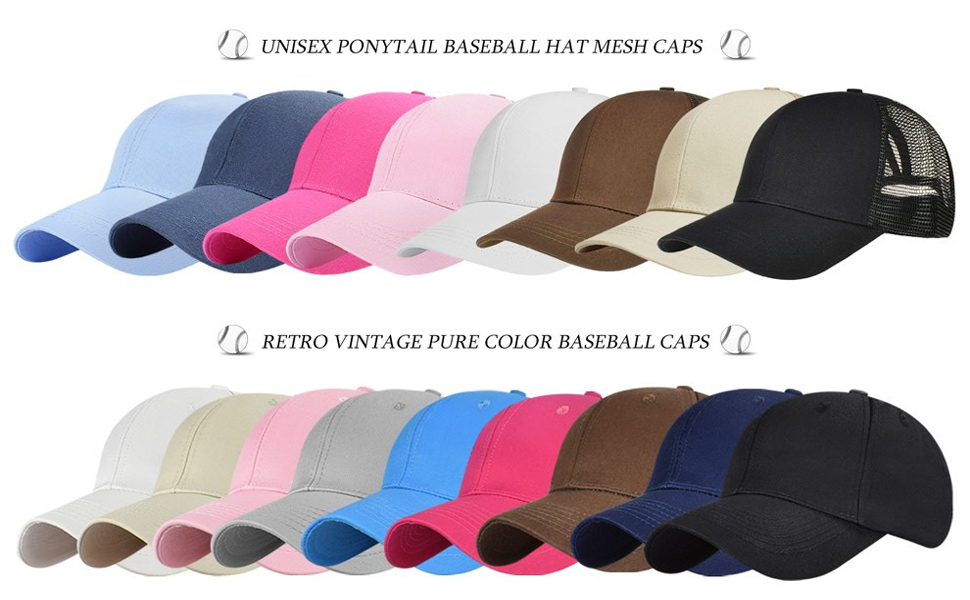 Baseball Cap Messy Bun Ponytail Half Mesh Adjustable Cap Hat Unisex Polo Style Classic Sports Casual Plain Summer Sun Hat Peaked Cap