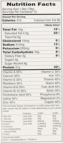The first high-protein, low carbohydrate, low-glycemic bar in the world.This high-protein meal replacement bar has changed the face of sports nutrition forever!Each delicious bar contains 32 to 34 grams of our patented protein blend.IMPORTANT MESSAGE CONCERNING WORLDWIDE BARS: Worldwide Choc. PB bar contains chocolate and may melt during transit. Although this problem is rare, it may occur if you live in a hot area. We suggest refrigerating the product as soon as you rece