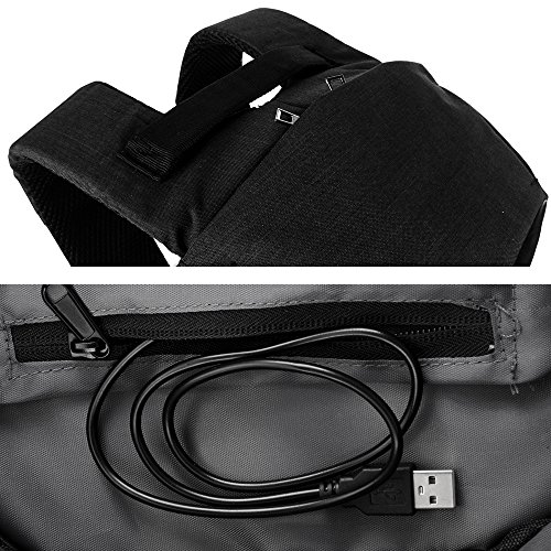 Ergonomic and lightweight making you have a more relax and comfortable experience when use it. The design of hidden zipper, and you weren't worry to be stolen. large capacity with a variety of function pockets, which suit for the outdoor activities and working. Specifications Dimensions: 32 x 13 x 44 cm (L x W x H) Weight: 700 Grams Features Water-resistant, anti-wrinkle, durable and sturdy. Slim backpack offers people easy carrying and you can go where you like, perfect for business traveling, go to school, weekend getaways, go shopping and take part in outdoor activities. Soft shoulder strap make you feel more comfortable and breath during a long journey. Package Includes 1 x Laptop Backpack 1 x USB Cable Note Water repellent in 5-10 minutes, clean water in 5 minute will not left any mark, If you let water or rain on it too long time, it will absorb into it. Do not use it in heavy rain. Install Guide The backpack does NOT bring a charger itself. Step1: Take off the main zipper, find a small zipper pocket on the right of the bag inside, and find the USB port out. Step2: Put your battery inside of the small pocket, connect your battery and the backpack USB port. Step3: connect your phone with the backpack USB port for charging through your own phone USB cable.