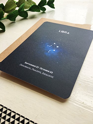 ▲ LIBRA CONSTELLATION A7 POSTCARD ▲ The bright Libra constellation is picked out in white against a deep blue starry night sky. Printed on one side and plain on the back, this Libra constellation postcard can be sent to a friend as a greetings card or displayed on the wall as artwork, perfect for those with a more minimalist style. And the thick, luxury card it's printed on makes this minimal space-themed postcard the perfect present - or gift to yourself, you've earned it. ▲ DETAILS ▲ 74mm x 105mm standard A7 postcard size with rounded corners (2.9 x 4.1 inches) 350gsm 100% recycled, uncoated card Designed in Edinburgh, printed in the UK Comes with 100% recycled kraft paper envelope, ready to send as a gift