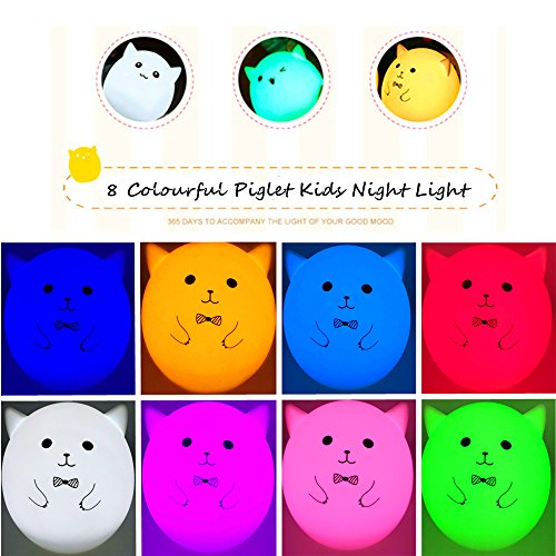Features: * It is a colourful Piglet Night Light. * Import super bright led, eye protection, energy saving,environment protection,long lifetime * Adopt safe, non-toxic silicon for the light cover * Soft light, strong light, 7 colourful light * Touch Sensor Dimmable LED Night Lights * Decorate your room and house * Application: Children' s Room,Hallway, Bedroom,Bathroom,Living Room,Outdoor, etc. Specification: * Name: Piglet Colorful Light * Input: DC USB 5V.(micro usb cable included) * Power: Max 0.5W * Material: ABS + Silicone * Power Generation: Touch / Tap * Dimension: 154mm / 5.5 Inch (D) X 122mm / 4.7 Inch (H). * Weight: 202g Instructions for Use: 1, Press the power button to turn on 1st warm light mode, then tap to switch among 7-color auto breathing mode (red-blue-green-yellow-purple-cyan-white) , standby mode and warm light mode successively; 2, There is still quiescent current under standby mode. Please press the power button again to turn off the light to save battery power if not in use for a long time. Package includes: 1 x Florally Piglet Night Light 1 x User's Manual 1 x Micro USB Cable