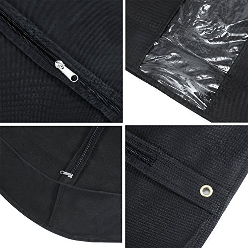 ★★★: [ Updated Version] 3 × pack Ultimate Thick yet Breathable Black 42 Inch Garment Bags - No other garments bag can offer so many features! Premium Quality Smart, breathable suit cover, With all the Features you want/need in a Garment Bag,Believe us and "ADD TO CART" Now Main Features: ★:Top Quality Constructions. Attention to Details ★ :Water Resistant acid-free 120GSM material ★:Metal Eyehole (*UPDATED* VERSION) ★:Durable Full #5 Zipper (*UPDATED* VERSION) ★:Clear Window --Wide and Clear Viewing ★:Easy to carry ★:Anti-Moth protector ★:2 Inch Bigger the Standard Garment Bags ★:Waterproof Nylon Shoe Bag (*UPDATED* VERSION) Additional Features: They feature a clear plastic window that makes it easy to identify the type of clothing inside. Additionally, a reinforced hanger opening ensures they will last a long time, and a sturdy full-length zipper ensures easy access to the bag's contents. Finally, a metal eyehole is conveniently placed at the bottom of the bag for easier storage and travel. Package Include: 3 × pack suit bag Product Warranty: We promise full refund or free replacement within 6 months without question asked.If you have other suggestions,please contact us anytime!