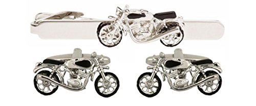 These are lovely set of novelty cufflinks and tie clip with the motor cycle being superbly well defined and finished in polished stainless steel. This set also has a twelve month guarantee from date of purchase. These cufflinks and tie clip are a must for all motor cycle lovers.
