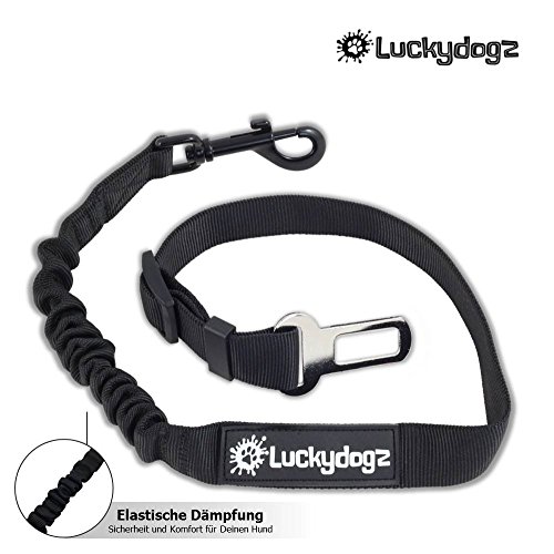 Are you looking for safety for you and your dog while on the move? Do you hate dog boxes in the boot that steal your whole space? The Luckydogz seat belt for dogs is a quick and easy way to protect your dog whilst on the move: No risk of penalties: no unnecessary punishments caused by missing dog security in the car Premium quality: we use high- quality, long lasting and durable materials. Easy to use: the safety strap can have a circumference from 55-80 cm. Fully adjustable. The seatbelt simply connects to the the dog harness and optimally protects your dog. Absorption function: the integrated elastic band absorbs the force of impact in the best way. - Do dogs really need to be securely fastened in the car? In German Road Traffic Regulations it is stated that animals in road traffic need to be secured, otherwise the following fines are applied: The dog is not securely fastened: €30. Dangerous situation €60 + 1 point. Material damage €75 + 1 point. GET NOW YOUR LUCKYDOGZ SEAT BELT.