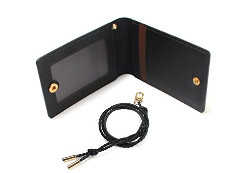 Materials : Cowhide Leather (Saffiano pattern) / Lanyard : PU * Holder Size : 2.75"(L) x 4.33"(H) / Lanyard Full Round Length : 35.5"(Length control by making a knot at the end of the lanyard)