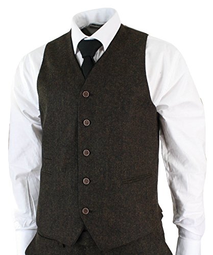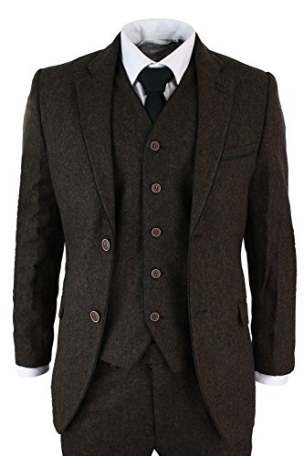 Style : kaos Brand : voeut Colour : brown Material : Mélange polyester * Costume 3 pièces classique pour homme effet tweed * Ensemble complet avec blazer, pantalon et gilet * Taille cintrée (entre slim & regular), points de couture noirs en contraste et coudières * Tenue idéale à porter pour toutes occasions formelles * Large choix de styles et couleurs disponibles en magasin!