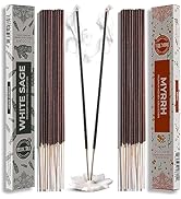 Trumiri Incense Sticks offer a collection of 120 organic incense sticks featuring 6 unique scents, including Dragon Blood, Frankincense, Myrrh, Benzoin, Amber, and Copal. Each stick is crafted to enhance meditation and create a tranquil atmosphere, all while being free from harmful toxins. The set also includes a chic incense holder for your convenience.
