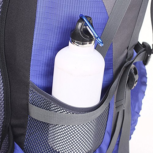 feature: 1.45L+5Llarge-capacity,lightweight compact packaging day pack, professional mountaineering bag. Maximum bearing capacity: 40KG 2. Professional adjustable weight break down system, deep and dense shoulder strap and belt to promote air circulation along your back and shoulders. 3. Packaging bag as the internal pocket, bottle rack on both sides. Large front pocket, multiple elastic bands. A hook can hang small items such as keys.Powerful plug-in system that can hang in sleeping bags, tents, cane and all other things in this bag. 4. Material: waterproof nylon. Breathable mesh strap, moisture-proof, touch smooth. Double rain-proof design, with a rain cover. 5. Reflective stripes design, increase the safety index at night, the outlet design, more humane, more convenient travel. You can adjust the waist width as needed. Product parameters: * Capacity: 45L + 5L * Material: waterproof nylon * Suspension system structure: internal frame package * Size: 60 * 30 * 20cm package: 1 * backpack 1 * rain cover About the return policy and our services If you have any questions, please feel free to leave a message to us. We will reply to you within 24 hours, and provide you with our best service. Washing and maintenance instructions 1. Waterproof fabric. Do not use liquid detergent or bleach. 2. Clean with a damp cloth, if necessary. 3. Air drying. Please do not iron.