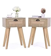 The PHI VILLA Rattan Nightstand Set of 2 combines durable MDF construction with natural rattan weaving to create a stylish, moisture-resistant, and scratch-proof storage solution. Each nightstand features three spacious drawers and measures 31.5"W x 15.7"D x 35.5"H, offering lightweight yet sturdy functionality. Designed for easy assembly and versatile décor compatibility, this set is perfect for millennials seeking a boho-modern aesthetic with lasting quality.