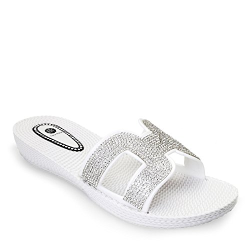 Hella Black Diamante Slippers. Another one of our iconic jelly wedge sandals but with a twist. It features the Diamante crystals all over the top strap, making it ideal for a day to evening wear. Comfort at its best with the wedge style for those looking for just a little boost.