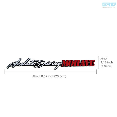 DETAILKOREA(Grid-Design) Car Slogan Lettering Cursive Emblem for Kia Borrego for Mohave The Genuine 100% New Brand This product is an Acrylic emblem design handwriting for Kia Borrego or Mohave "Absoolute Driving Mohave" ※ Warranty In the case of one damaged the previous 6 months, please send us a photo of the damaged product. We will confirm the shipping again after a photo of the damaged product. ※ If you attach the emblem on the Front Grill, please use the extra adhesive. (Adhesive is not included). This product made by acrylic material. So, it can be broken when you tear off from sticking section. When the first time, please find exact sticking area. Non reusable. Re-use may be damaged. ▶ SIZE : About 8.07 x 2.89 inch (20.5 x 2.89 cm) ▶ Quantity : 1 pcs ▶ Material: Acrylic, Hairline Sheet ▶ Manufacture: DETAILKOREA (made in korea) ▶ Car detail parts accessories ▶ Stylish design ※ Emblem(Detail Tip) attachment methods. 1. Clean area where you want to put the emblem. 2. Please remove vinyl on the back of the emblem. 3. Put accordance with good horizontal and vertical. 4. Please do not wash your car for 72 hours after attaching the emblem. "DETAILKOREA" ownership of the design. Unauthorized copying or use prohibited. If you have any questions, please contact us at any time.
