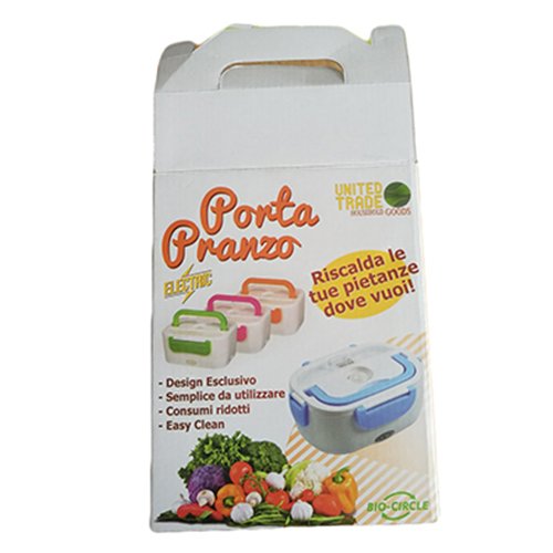 The warmer contains a removable container. Electric Container to carry food, comfortable and practical. Keeps the food fresh, a constant temperature. Power of 35 watts. Internally is constituted of a material that allows the maintenance of heat, and is divided into two compartments thanks to an internal structure that keeps the food warm for a long time. Comfortable for those lunching at work or in the office. is equipped with a minicontenedor For The Fruit and a spoon. The useful time to heat the bowl is about 30 minutes. Features two internal compartments, one of them is removable. If the container is connected to the electrical current, the food remains hot during the transportation or during a time without being plugged in to the mains.