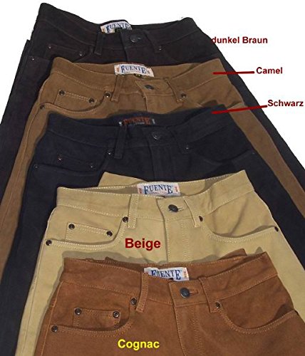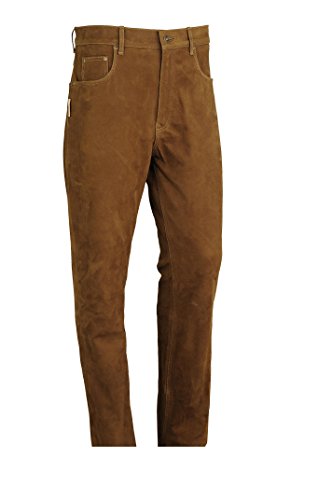 Outdoor Men´s Clothes from high quality nubuck leather in inch sizes and 5 classic colors : Robust 5-pocket leather jeans in straight boot-cut fashion for men and womens / The trousers are made from supple nubuck leather and can thus contribute particularly pleasant , like a second skin ! The classic leather pants / leather jeans convinces with its high quality and the best fit as well as by the timeless style . 5 practical pockets and variable in length : if the pants too long , simply cut and fold it or leave open .