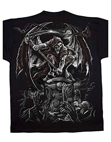 Gothic Horror T Shirt Gravestone Reaper Skull new Liquid Blue Mens Black
