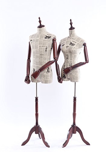 High quality Dressmaker's dummy with adjustable arms and hands Condition: 100% Brand New and Original Retail Packaging (where packaging is applicable), first class quality 5 removable parts (head, arms, upper body, wooden base) Arms and Hands made of wood you can easily be adjustedNewspaper Pattern stoffbezogenen upper body with lid made from wood Adjustable height 140 - 180 cm. 's taken Material stoffbezogenen torso.Arms flex fingers out of wooden, torso made from high quality fibreglass (cannot needle pre-punched are) Dark wooden stand tripod Contents: disassembled Model/Mannequin (without clothes, wigs or jewellery) and, original retail packaging (where packaging is applicable) For more abstract the tailors dummy mannequin busts, torso, etc visit our shop. www.eurotondisplay.com