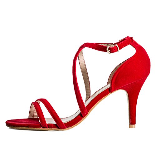 Womens Ladies Mid Low High Heel Strappy Crossover Party Wedding Prom Sandals Shoes UK Sizes (6, RED)