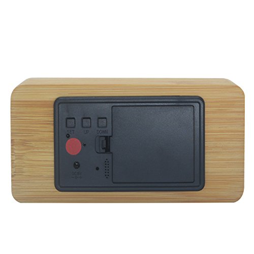 Feature: 1.This designer LED digital alarm clock is made of bamboo and its face is enclosed inside the bamboo. 2.Its LED display time and year alternation (temperature / time at the same time display, year / month / day at the same time display) 3.Sound activated: Sound control mode, when the sound of close range greater than 60 dB can display. 4.Every time can set up three groups of alarm, Each alarm 1 minute Sound are: bi bi bi... 5.Time display 12-hour or 24-hour mode 6.Temperature display mode(°C/°F). 7.Add a touch of modern to your bedroom, living room or office. 8.Stylish look with wooden style, unique and cool Wood shape and texture will be the breath of nature into the room, to achieve the perfect combination with simplicity. Three brightness manual adjustment Long press (UP) key for 3 seconds to display "L1" normal light, And then short press (DOWN) shows "L2" brightness weakened, And then short press (DOWN) shows "L3" brightness again weakened Specification:Power source:USB charging cord (cable included) or 4*AAA batteries(not included) Brightness: 3-level(high,med, low) Input: DC 5v/500mA Dimensions: Size:150*70*42mm (5.91*2.76*1.66 in) Precautions: If LED display keeps ON and only powered by batteries, battery is easy to waste (Works around 3 days,Sound control function is recommended ON). It is recommended to use the USB cable instead of the battery charge clock. Please choose the compatible adapter. Please use the clock in dry area,due to all wooden housing. When the operation error or improper operation caused by crash, you can press the "RESET" button to restore the factory settings Packing List: 1 x Wood alarm clock 1 x USB Charging Cable 1 x User's manual 1 x Package box