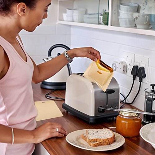 Toaster Bags for Grilled Cheese Sandwiches Made Easy (2 Pack), Reusable, Non-stick Feature: Material:PTFE coated fiberglass Size:16*16.5CM Package Included:2x Reusable Toaster bag makes the best Mess - free toasted sandwich ever You can use toaster bags to make a wide variety of toasted sandwiches or to heat up pastries , pizza slices ,chicken nuggets and more ! Perfect for kids and after school snacks . Notice 1.Please allow 1-3cm error due to manual measurement.Pls make sure you do not mind before you bid. 2.The color may have different as the difference display,pls understand.