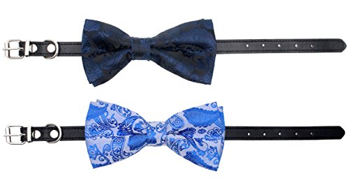 ADVANTAGE Make your pet like a prince or princess when presenting the party, wedding and any other occasions. 100% brand new and high quality,the stitching which is flush and smooth and not overly visible. It comes in three different sizes: large,medium and small,suitable for MOST PETS to use.The buckle closure lets you adjust this collar precisely to your particular dog's comfort,5 holes for adjustment. Can be worn alone or with other pet dress. A perfect thing to make your pets different,to be adorable,more beautiful or handsome than others. Make your pets looke so posh and swank,let your pets stand out with these adorable selected bow ties! You'll love these collars no matter what your color scheme. RECOMMENDED FEATURES 1. Perfect for outdoor walking,competitions,weedings,Halloween and Christmas parties. 2. With a variety of kinds and colors,make your darling more attractive and energetic. 3. Material: Polyester Silk and PU Lether. 4. Bow Size: approx.5" x 2.5" (12 x 6cm). 5. Neck size: L Neck 10"-12.5" (25 - 32cm) M Neck 8.5"-10.5" (22 - 27cm) S Neck 6.5"-8.5" (16 - 22cm) 6. Price is for 2 pieces,comes in 2 pcs of different colors. Note:Specially designed to dress your pets like dogs and cats, Before you order, Please insure your dog is suitable for this size.