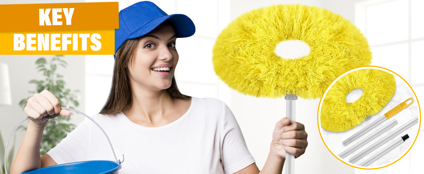 Reluen Removable and Washable Microfiber Ceiling and Fan Duster New Yellow