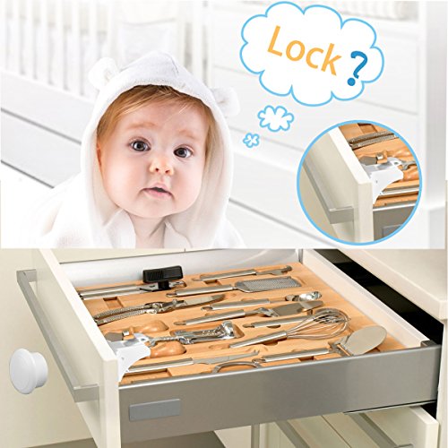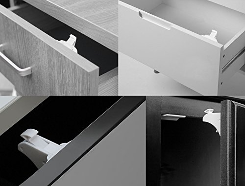 Making your house safe - The #1 Task for a Parent For any parent the main concern is the safety of their children at all times. This is why they strive to make the house as baby proof as possible. Baby Safety Magnetic Cabinet Locks Set The locks set is the ideal solution to keep your baby safe without having to keep a constant eye on their exploration adventures such as ingesting dangerous chemicals or getting their curious hands on dangerous tools. The magnetic key is easy to store high up and out of reach from children and the locks install inside cabinets and drawers, keeping them out of sight.Unique normally open function, more easier to use and humanized. No Damage and Easy Installation No tools or drilling is needed for installation. It takes you less than 5 minutes with the strong 3M adhesive tape. Can be easily removed without damage to the original furniture surface later when the kid is grown up. Caution: -Please clean and dry the surface. -3M tape: keep 24 hours before your first use for max adhesive. - Installation method may have to be slightly altered based on your cabinet or drawer style and design. -Please Keep The Key Far Away From Children. -This product can not take place of adults to take care. -The lock is suitable for the thickness within 38mm. -When installation, do not touch sticker by hand or double use that will make sticker weaker to use. -The magnetic lock is made of very powerful magnets. Do not place near credit cards, CD's , DVD's , Videos, taps, computers etc. Package Lists: 4 * Locks 1* Keys