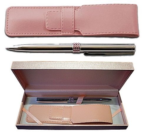 Welcome to Cigala-Art UK, bringing to you a range of gifts and giftware to include some lovely gifts for ladies. Here we have a quaity chrome and pink diamante crystal detailed pen. Full length (5,.5 inches) approx. 14cm approx. Comes with a handy pink leatherette pouch. A great gift idea for any lady for a Birthday or Mother's Day present.