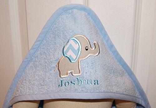 - Our personalised Boys Elephant baby towels make ideal gifts to celebrate occasions such as Baby Showers, Births or just great for snuggles and wrapping the precious one up after birth. Complete with integrated hoods and are made of 100% cotton towelling material with a corresponding trim border and measure approx. 75cm x 75 cm which are perfect for babies. They are appliqued with Mr Elephant and you name choice on the integrated hood with name embroidered on the back of towel.