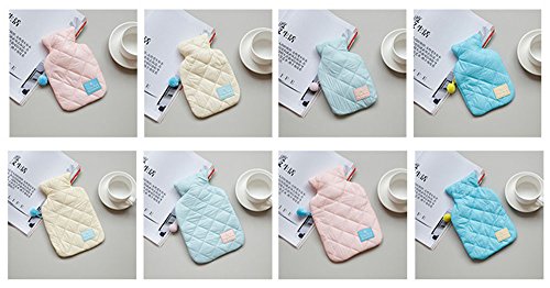 Product description Colour: pink,yellow,blue,light blue Featuring treating sore muscles, stress or cramps, arthritis, aches and pains, stiff necks, lower back pain, menstrual cramps and other common aches, this small hot water bottle is perfect as a gift for your parents, friends and yourself. ATTENTIONS: 1.Not suitable for children under the age of 36 months. Children should always be carried out by an adult. 2. When filling the hot water bottle, DO NOT USE BOILING WATER. This may damage the rubber. 3. Fill only to two-thirds capacity maximum. When filling, hold the bottle in an upright position and fill slowly to avoid the hot water splashing back. 4. Before use, allow up to 20 minutes for the bottle to reach its maximum temperature. Prevent contact with hot surfaces. 5.Hot water bottle can cause burns - avoid prolonged direct contact to skin.